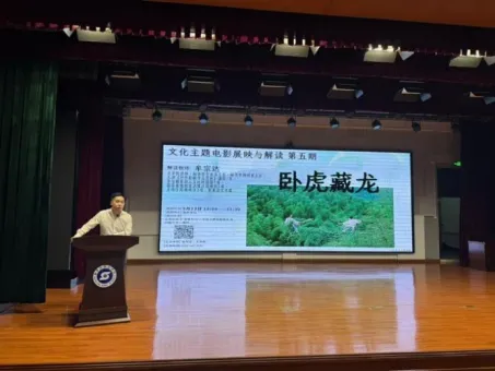 为深化读书行动,持续推进书香校园建设,5月23日晚18时,由校图书馆与文学院联合主办的“文化主题电影展映与解读”系列活动第五期在春秋讲坛顺利举行。本期特邀请文学院牟宗达老师为师生解读由李安导演执导的奥斯卡获奖影片《卧虎藏龙》。