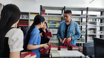 第五十、五十一、五十二号古籍……”“第五十、五十一、五十二在这。"文科楼三楼不时传来这样的声音。活动过程中,志愿者们相互配合,大家穿梭在一排排书架中,了解古籍分类与版本,认真计算古籍的数量,将古籍摆放整齐,分批次有序地进行分工合作,提高了本次整理工作的效率。