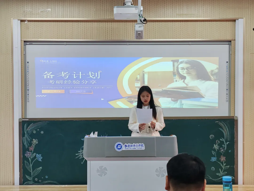 学生代表们首先阐述了考研的重要性和选择考研的动因。考研是一项长期的战役,需要有清晰的目标和切实可行的计划。结合个人兴趣、职业规划和专业发展趋势选择目标专业和院校,并据此制定详细的备考计划。备考计划包括每个阶段的学习重点、时间安排和复习方法,确保能够有条不紊地推进备考进程。学生代表们还分享了自己常用的收集考研信息的网站、APP、公众号等,方便大家充分了解择校择专业时需要考虑的各方面因素。