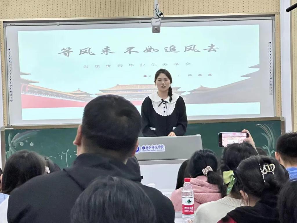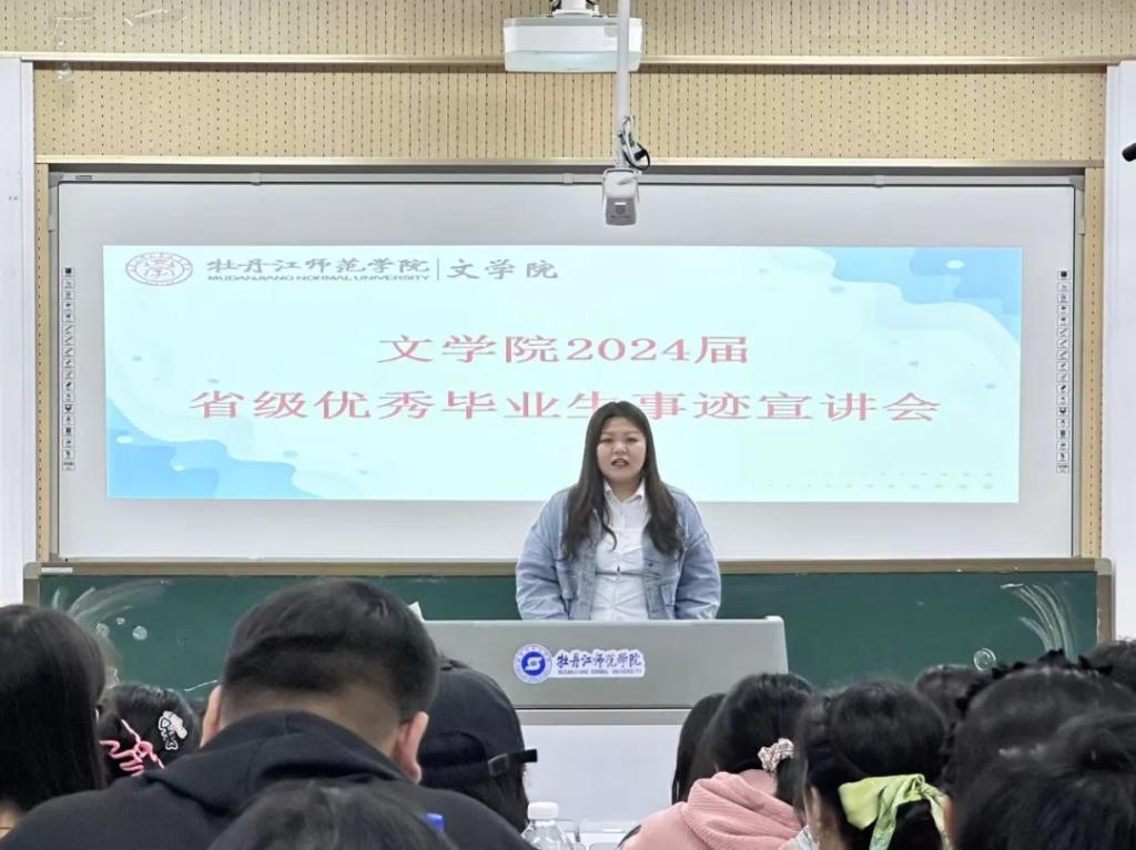 为进一步加强文学院学风建设,营造良好的学习氛围,充分发挥榜样引领示范作用,提升同学们的自律意识,激发同学们奋发向上、刻苦钻研的优秀品质,5211800,文学院在文科楼101举办了优秀毕业生分享会,本次分享会邀请了20208位黑龙江省省级优秀毕业生进行学习、工作等方面的经验分享,程雪佳老师主持本次会议。