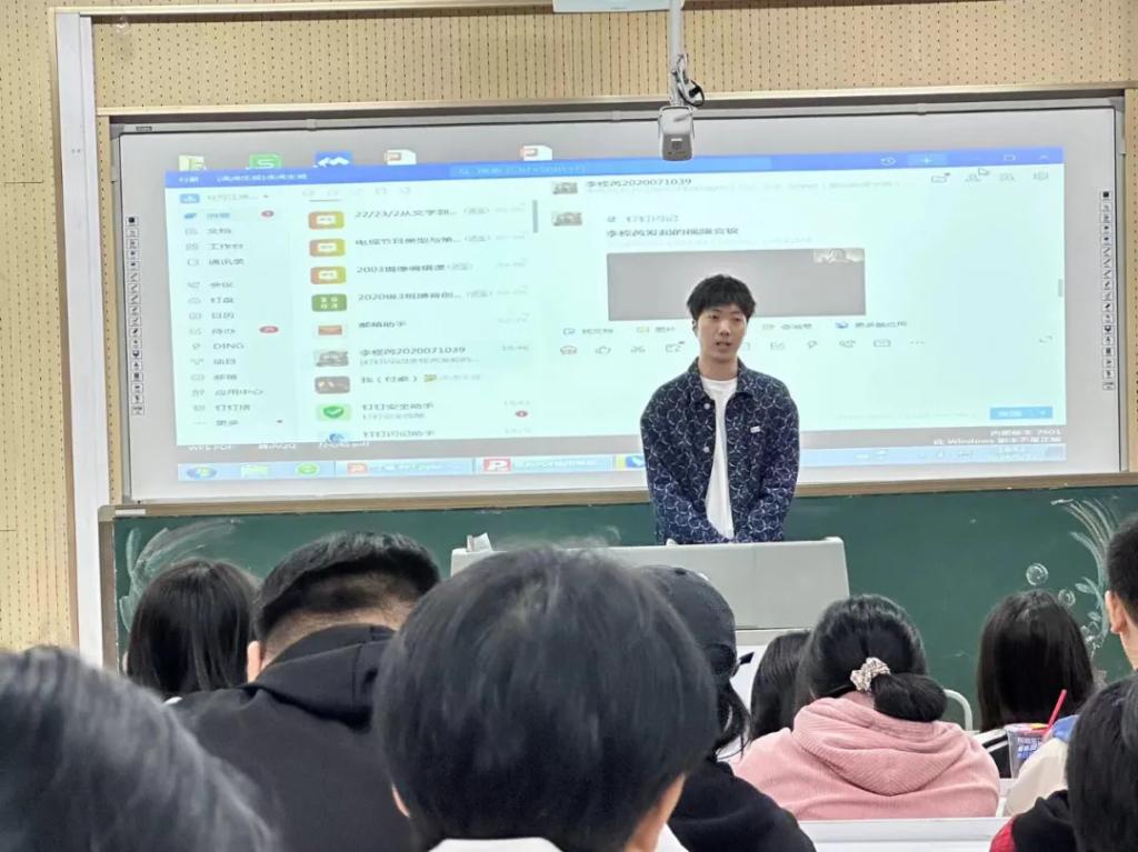 薛鑫鑫同学经验分享的主题是“等风来,不如追风去”。在学习方面应当做到“勤学善思,学无止境”,在工作方面则要做到“尽职履责,砥砺前行”。她还强调,大学时间不可浪费,应该做好规划,大三前考取英语四六级证书,大三决定考研考公还是就业。她还建议同学们平时要多出去走一走,拓宽眼界;去参加比赛,促进个人发展;去不断尝试新鲜事物,不要害怕失败,同时也不要为过去而懊悔、为未来而迷茫,要用行动打败焦虑。