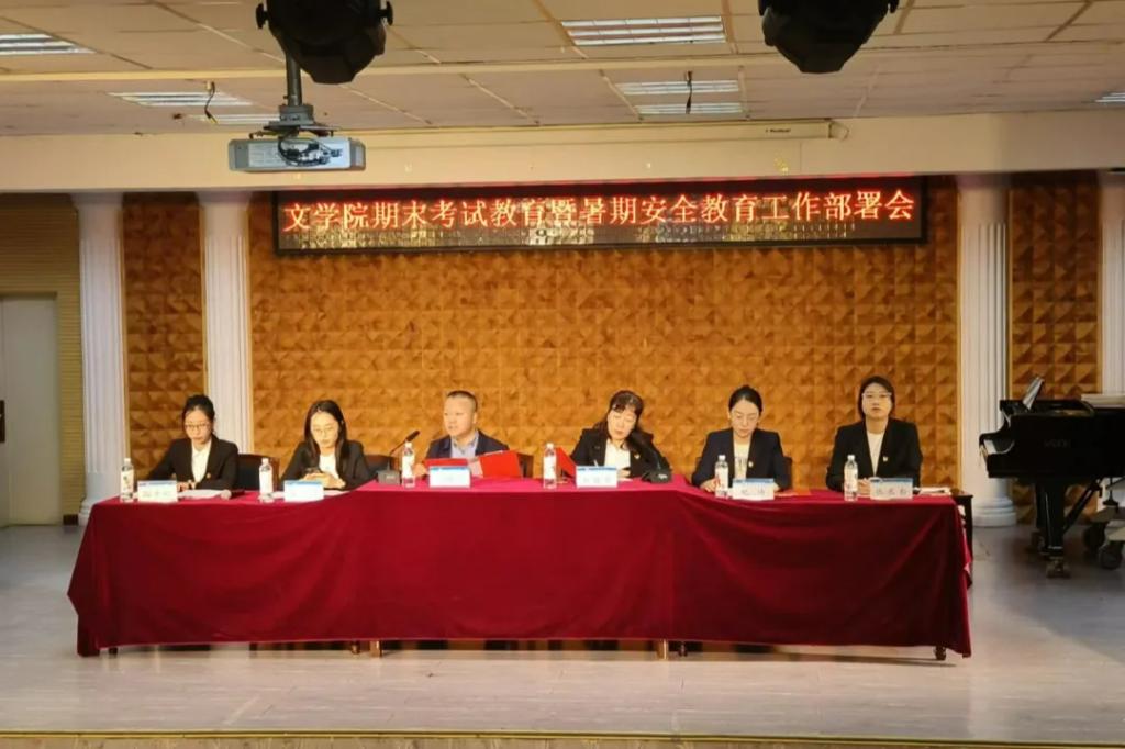 为进一步推进学风和考风建设,营造诚信考试的良好氛围,同时增强学生假期安全意识,保证学生顺利离校返乡,文学院于2024年6月22日九点在第二音乐厅召开期末考试诚信教育暨暑期安全教育工作部署会。文学院党委书记刘晓霞、辅导员纪伟、程雪佳、张东影、邸千桐出席本次会议,学生干部和学生代表参加会议。会议由党委副书记迟艳平主持。