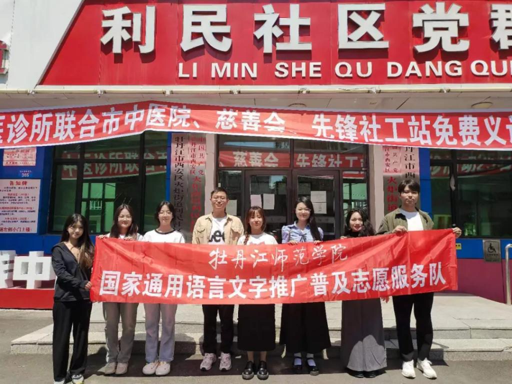 为推广和规范使用国家通用语言文字,充分发挥国家语言文字推广基地(牡丹江师范学院)的引导和示范作用,牡丹江师范学院国家通用语言文字推广普及志愿服务队于6月26日上午,深入利民社区,开展了推广普及志愿服务活动。