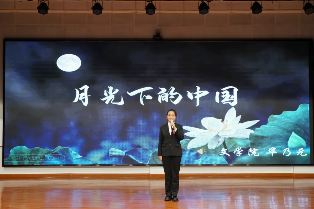 文学院代表队以《读中国》《月光下的中国》两部作品,用饱满激情与铿锵韵律礼赞文明薪火,传承经典回声。通过演绎诗歌中的理想追寻与生命哲思,在《读中国》的深沉告白与《月光下的中国》的悠远意境中,迸发直抵人心的情感力量。