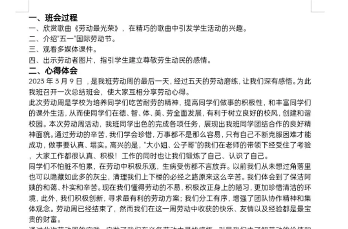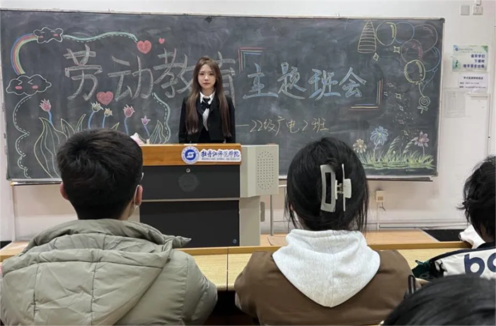 为贯彻党的二十大精神和《关于全面加强新时代大中小学劳动教育的意见》,引导学生向劳动模范学习,向身边榜样看齐,切实树立终生辛勤劳动、诚实劳动、创造性劳动的观念,文学院各班级积极开展劳动教育周主题班会。