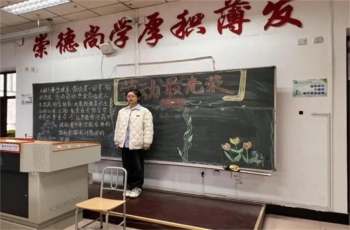 在主题班会过程中,同学们集中学习了习近平总书记关于劳动教育的重要论述,分享劳模故事、身边劳动者的故事、做志愿者时的经历和心声,牢固地树立了劳动最光荣、最崇高、最伟大、最美丽的观念。