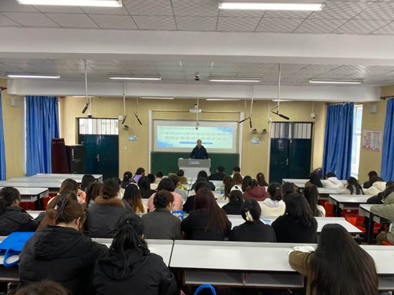 辅导员程雪佳老师从“三支一扶”“特岗教师”“西部计划”政策三个方面向同学们进行了客观、细致地分析。并针对当前学生就业现状进行了详细解读,向同学们普及了政策,帮助毕业生树立服务基层理念。她鼓励在座的同学们积极响应国家号召,转变就业观念,真正做到“干一行爱一行”,并表示学院及学校会全力以赴为毕业生就业提供便利条件和合理平台,帮助毕业生积极探索未来就业路径。