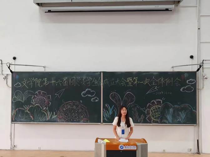 会议第二项,团总支副书记李美林对团总支进行介绍。她提到文学院团总支作为学院共青团工作的核心力量,要秉承服务大局、服务青年的宗旨,积极举办文化活动与实践项目,强化团支部凝聚力为文学院学生搭建成长平台。同时,团总支副书记李美林和杨若彤展望了未来工作,提出加强对同学们的思想引领和组织建设,丰富团学活动,并承诺将虚心学习,不断创新,期望得到师生支持,共同推动团总支发展。