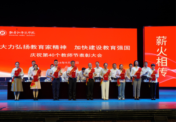 9月10日,牡丹江师范学院“庆祝第40个教师节暨先优表彰大会”在第一音乐厅举行。会议对文学院“省政府特殊津贴”“校优秀教育工作者”称号获得者綦中明院长、“黑龙江省模范教师”“黑龙江省教学名师”称号获得者李华教授进行了表彰。