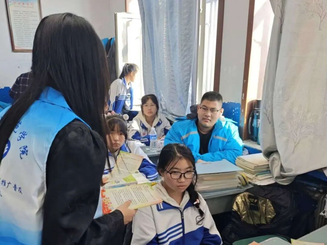 为积极响应国家语言文字政策号召,切实提升推普成效,凸显普通话在中学教育中的重要价值,2024年10月24日,牡丹江师范学院国家通用语言文字推广普及志愿服务队在文学院曲竟玮老师的带领下,深入兴源日善中学,开展“颂九州同韵,传四方通语”推普志愿活动。