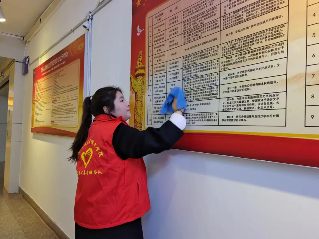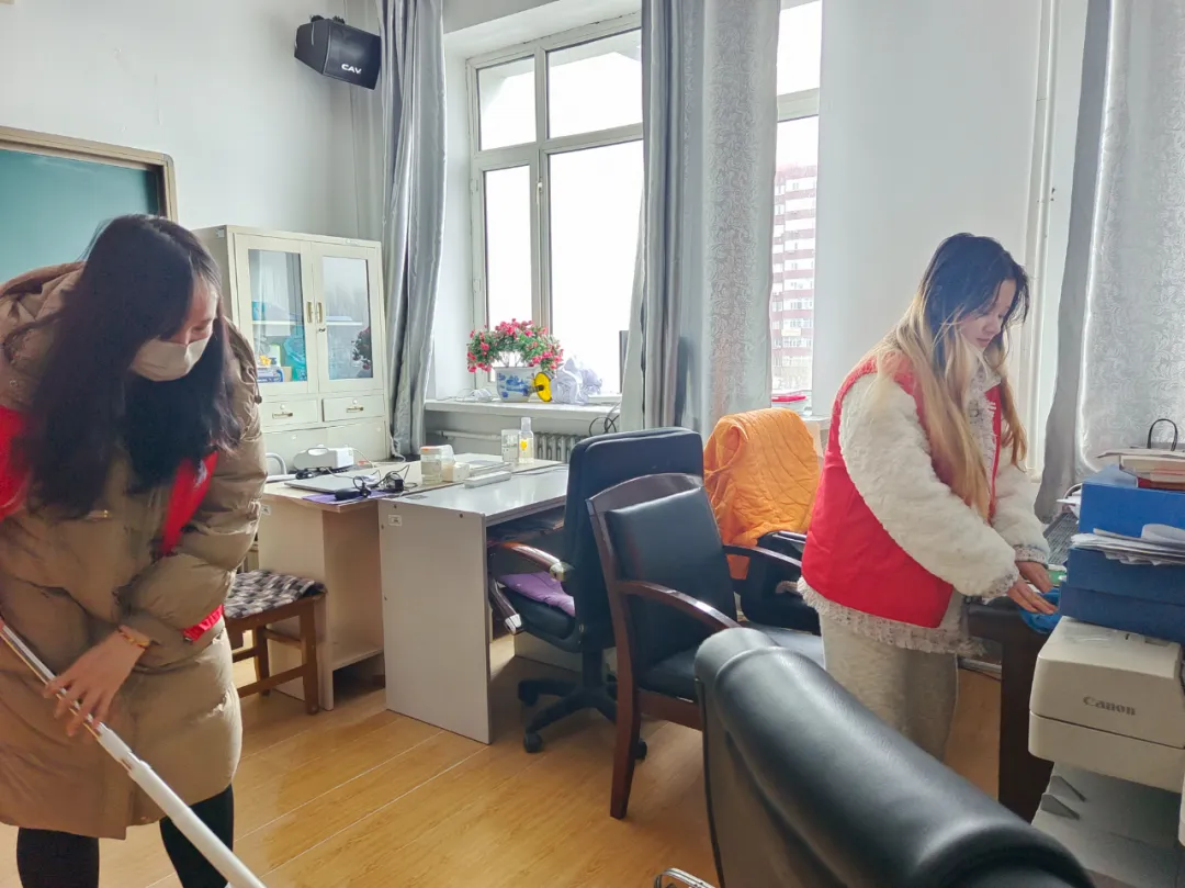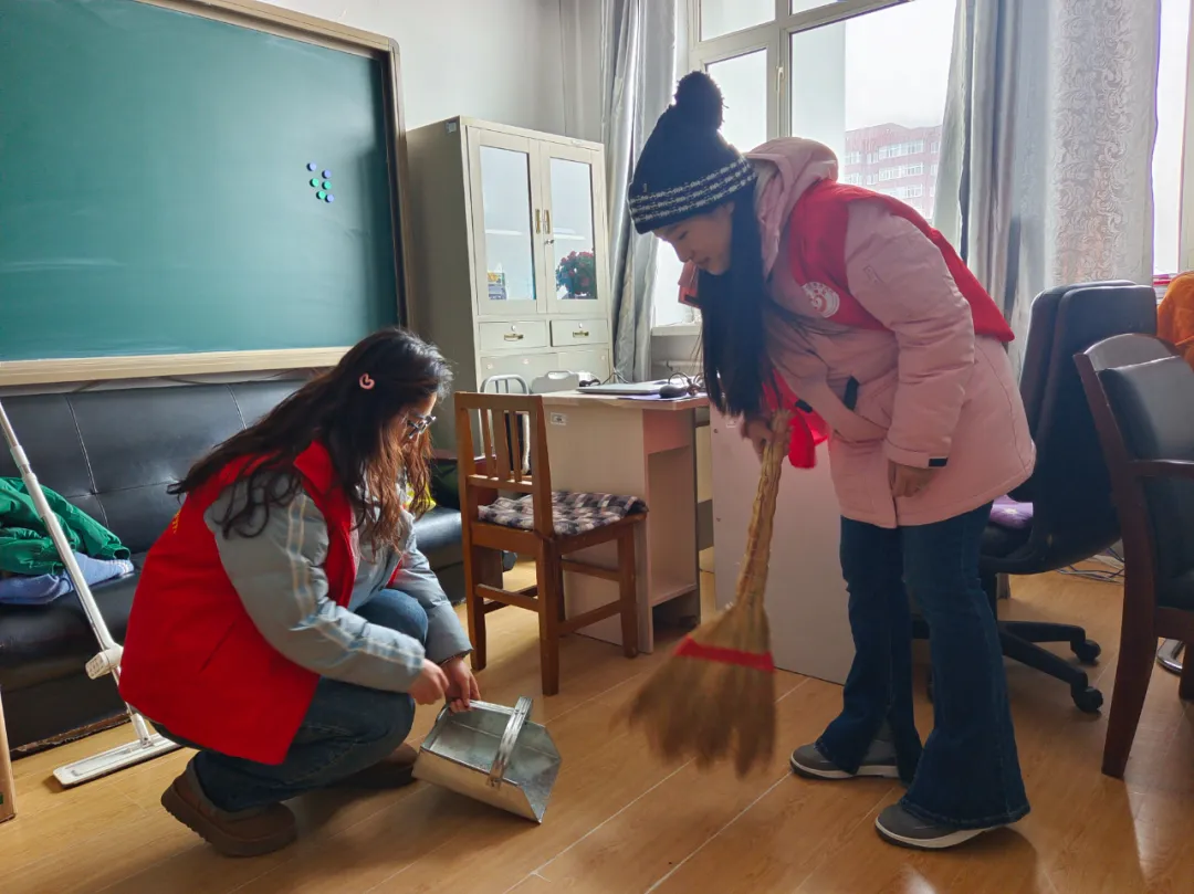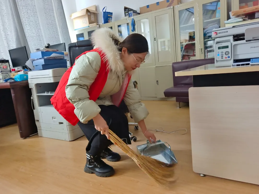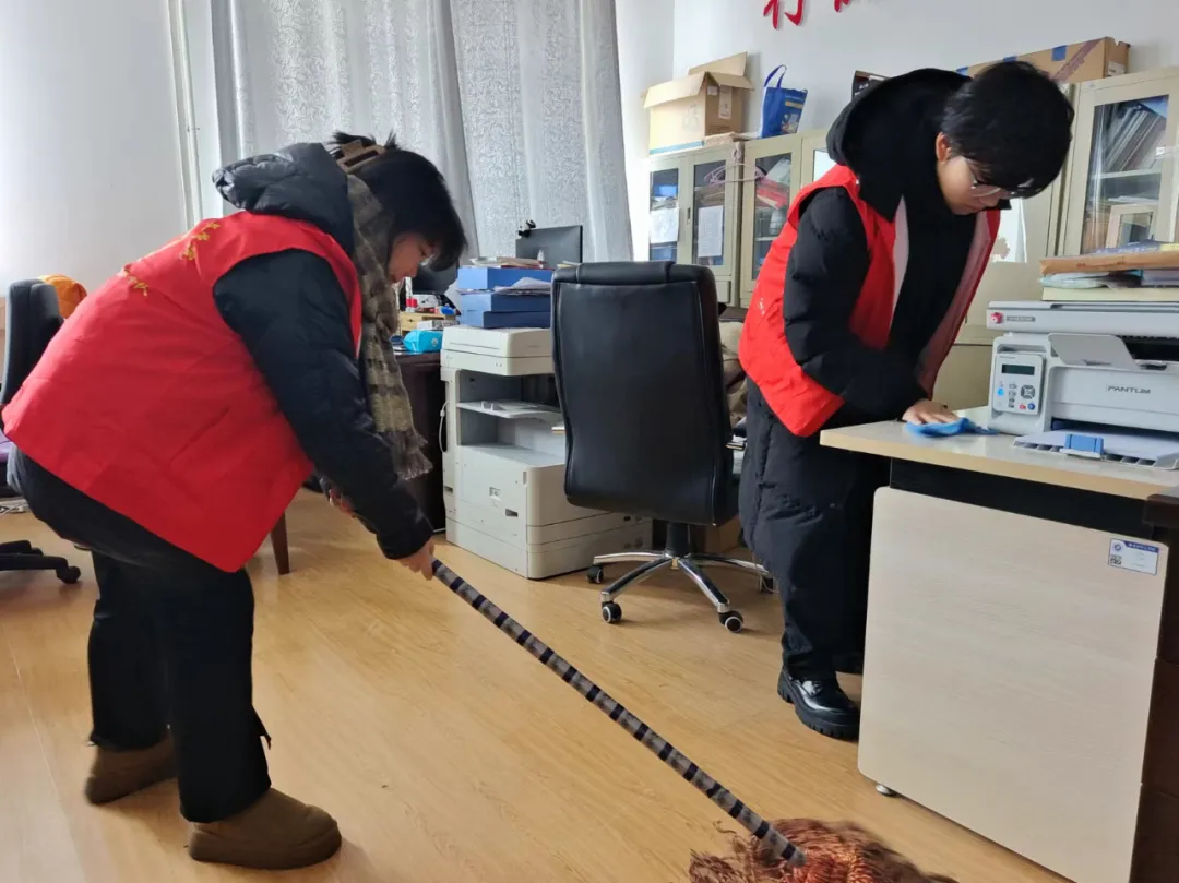 清扫卫生、擦去尘埃,迎接崭新的开始。全体志愿者积极投入,撸起袖子加油干。他们耐心地清扫办公室、教室、教学楼周边人行路等区域,做到“卫生无死角”,整个过程细致、有序。每一名志愿者都以实际行动共同为师生营造出一个干净、整洁、舒适的工作与学习环境,他们背后忙碌的身影,都诠释了真诚的劳动精神,凝聚着属于文院学子的阵阵暖意。