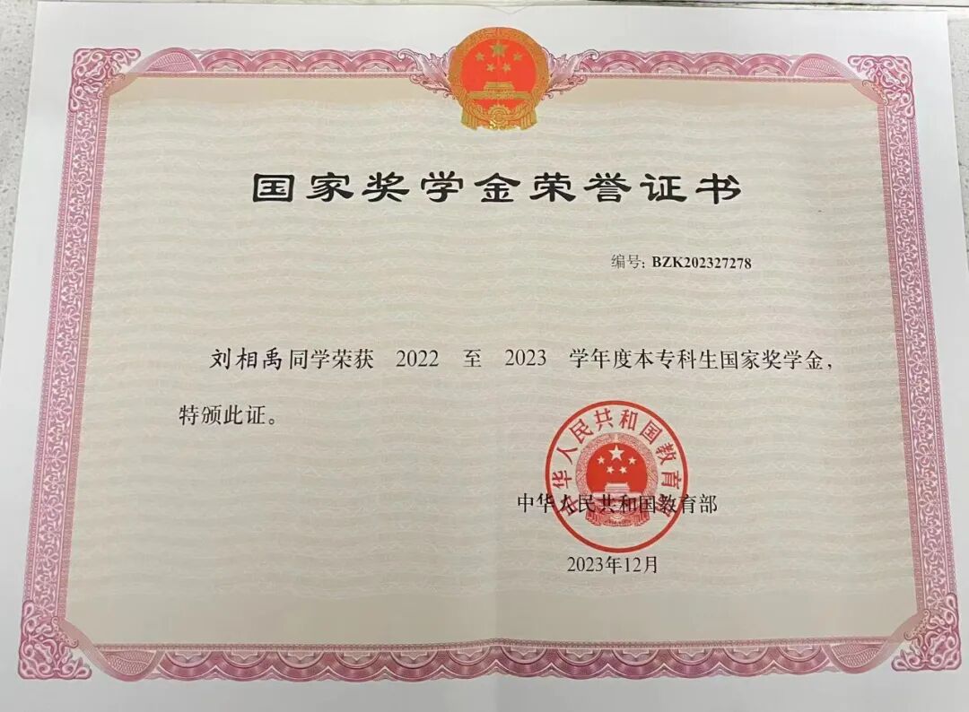 鲜衣怒马少年时,不负韶华行且知。国家奖学金对我来说是一份鼓励,更是激励我不断前行的动力。我会一直秉持初心、砥砺前行,勇敢面对学习和生活中的挑战,用实际行动书写最美好的青春篇章