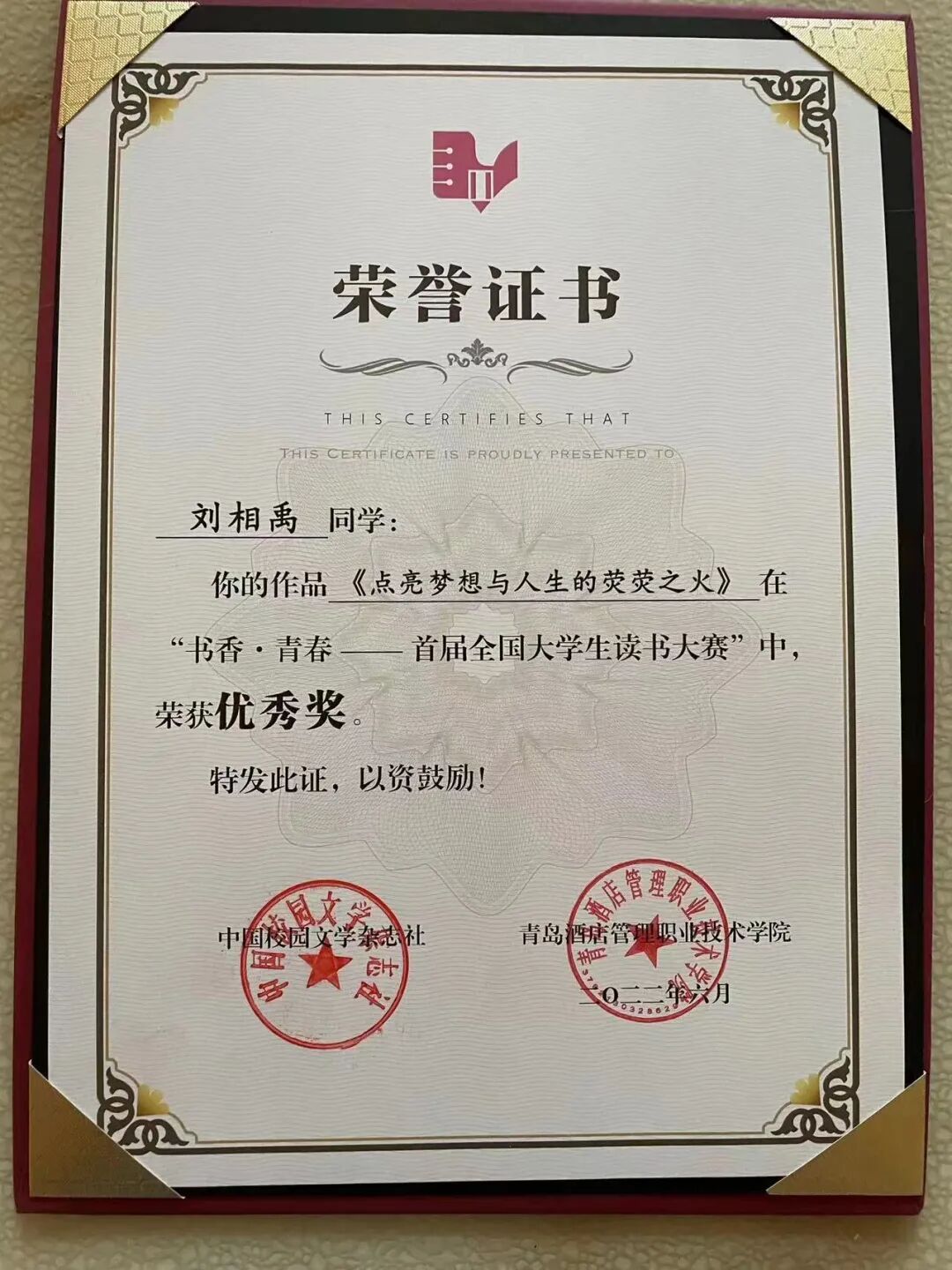 2021年,我加入了牡丹江师范学院乃寅写作班,参加微言文化沙龙、读书会、空山诗会等讲座,不断提升文学素养、开拓自己的视野。2023年暑期我以线上腾讯会议方式参加了黑龙江省文学院第二十三届中青年作家班培训,在各位作家的教导中加强理论学习、不断收获新的知识。同时,我积极参加学校组织的活动和学科竞赛,荣获了中国校园文学举办的“书香·青春”首届全国大学生读书征文大赛荣获优秀奖,全国大学生英语竞赛C类三等奖、牡丹江师范学院第七届语言文字大赛优秀奖。我也意识到对自身职业做出规划的重要性,在2023年第十一届黑龙江省大学生职业规划大赛校级选拔赛中荣获优秀奖。