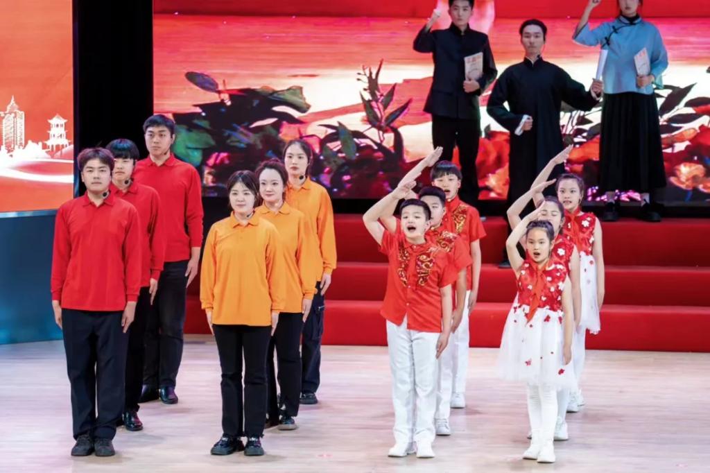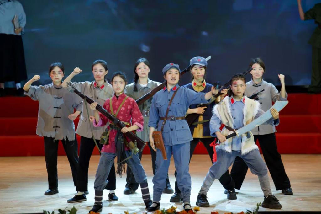 八女投江,精神咏流传。在情景剧第二部分中,墨林艺术学校的小朋友们饰演少先队代表方阵,她们用心灵与八女战士对话。毕乃元同学饰演“冷云”这一角色,她带着七位战友,用自身的故事为少先队员们上了一节生动的思政课。她们口中一声声的“请您放心”,使大家都感受到了英烈们英勇无畏和无私奉献的精神,激励在场全体同学争做时代先锋,勇做新时代好青年!