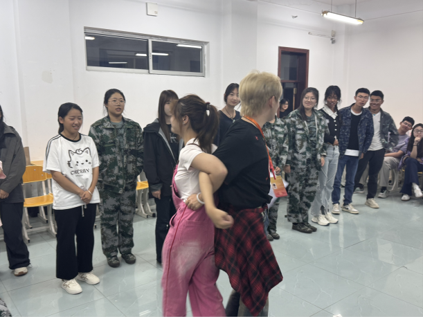 活动在主持人的温暖问候中拉开帷幕。“大风吹”游戏中,一句“吹穿黑色鞋子的人”让现场瞬间活跃起来,同学们迅速交换座位,笑声不断,陌生感也随之消散。随后通过报数分组,各小组在“姓名接龙”中努力记忆彼此的名字,像滚雪球一样层层叠加,不仅锻炼了记忆力,更在不知不觉中拉近了心与心的距离。