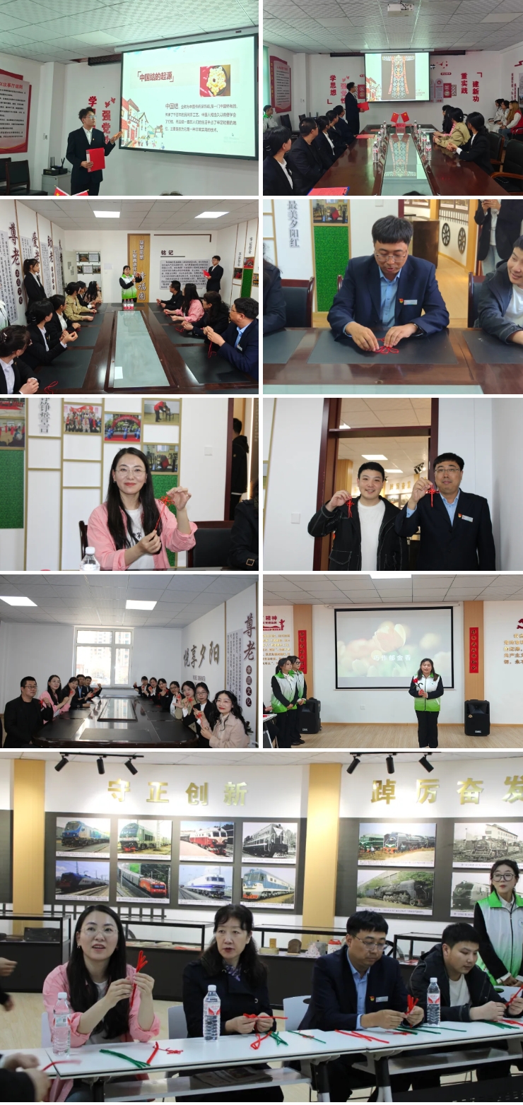 仪式结束后,领导老师组织同学们进行了手工编织活动。学生代表赵致远向大家介绍了关于中国结的形成、发展、品种等方面的知识,“山中芸香”团队成员邹谨蔗、李淑瑶、王瑞梅等同学教大家编中国结和制作郁金香手工花。