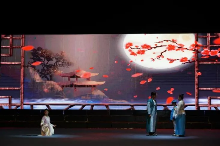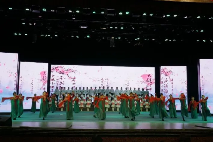 古诗联唱节目将以《琵琶行》为代表的多首经典古诗巧妙地串联在一起,悠扬的歌声伴随着古典的旋律,让观众穿越时空,领略到了古代诗歌的独特魅力。同学们身着红绿色的汉服,以优美的舞姿诠释了传统文化的柔美与典雅,舞者们灵动的身影与音乐相得益彰,给现场观众带来了一场视觉盛宴。