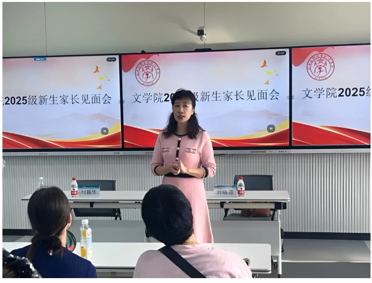 秋高气爽,丹桂盈庭。8月30日下午,文学院在实训楼709、710教室召开2025级新生家长见面会。学院党政领导、辅导员老师与200余位新生家长齐聚一堂,共话育人初心,携手助力2025级新生开启大学新篇章。