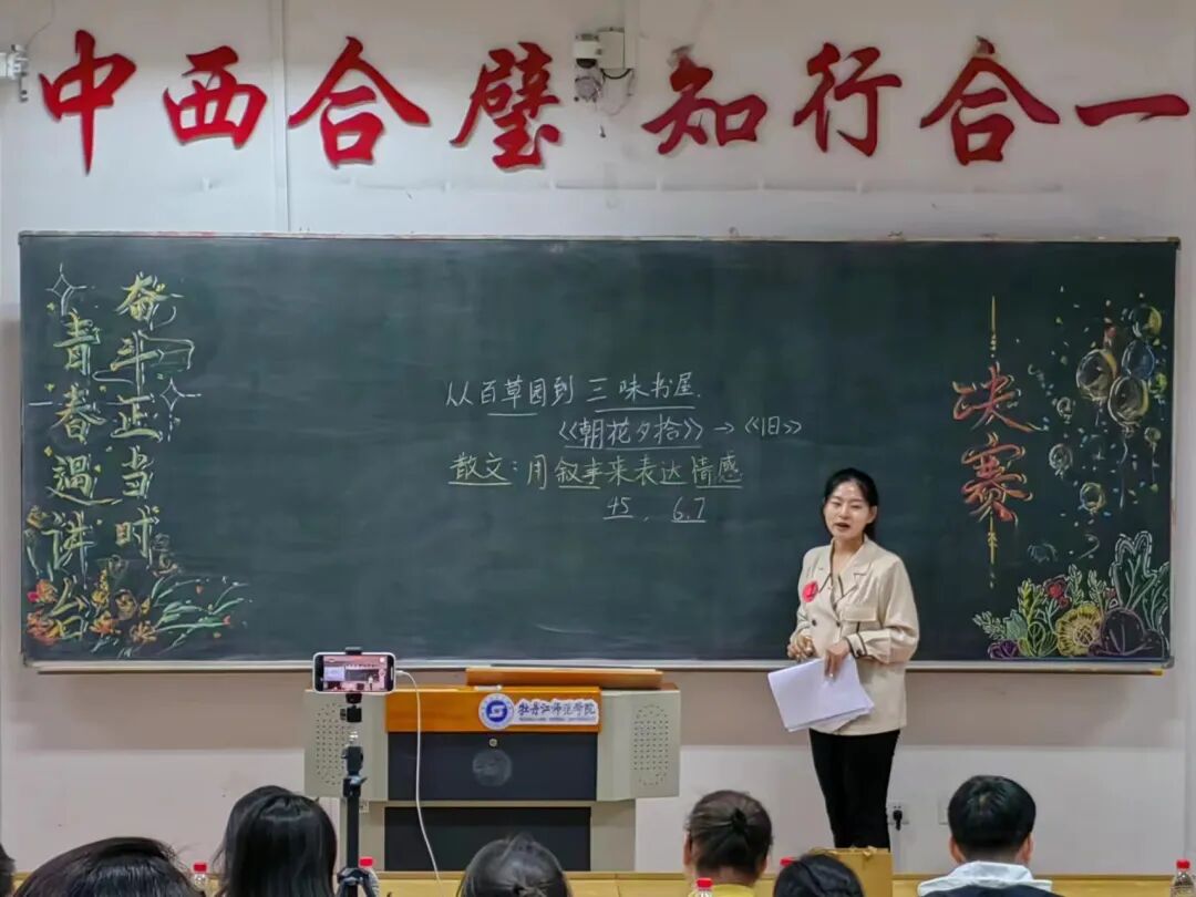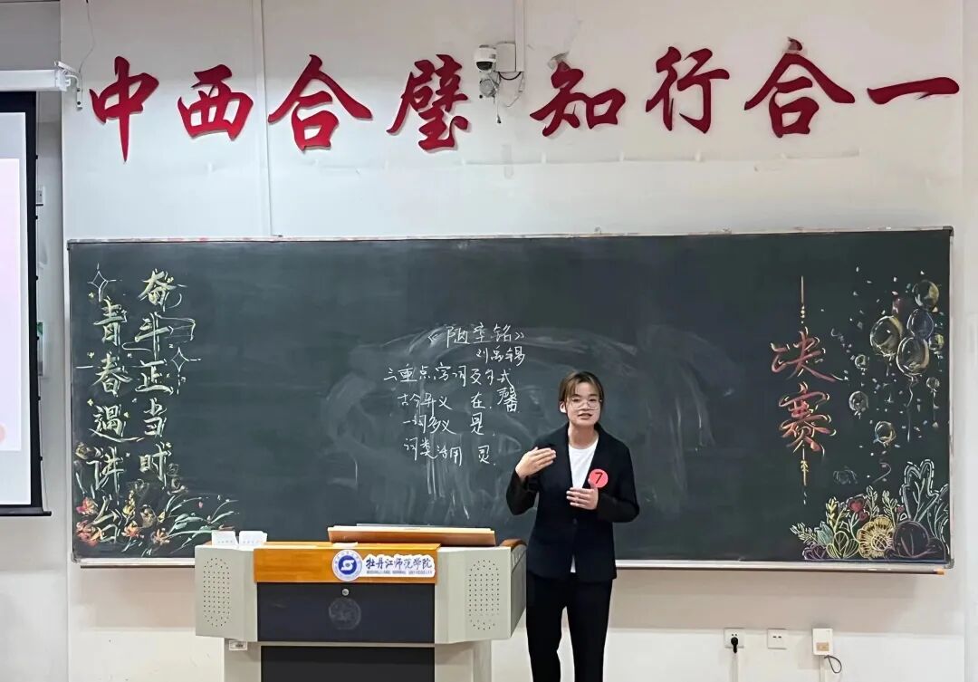 讲台上,选手们精神饱满,思路清晰,环节紧凑,设计合理,表达准确流畅,教态大方得体,别出心裁的授课朗诵感染观众的心弦,多维的课堂互动点燃台下同学的激情,极具个人特色的授课风采引起现场的频频掌声。