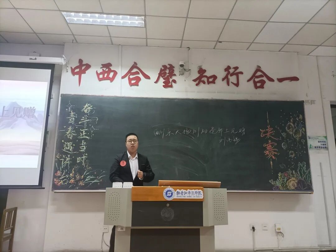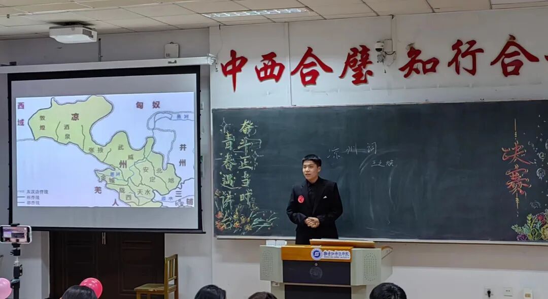 4月26日晚6:00,文学院于综合楼427举办青春讲台决赛,李莹副教授、汉语言文学专业系主任胡宗华、21级辅导员纪伟担任本次大赛的评委,辅导员贝思雨、程雪佳、张东影担任本次大赛的嘉宾。陆兵和王梁主持本场比赛。