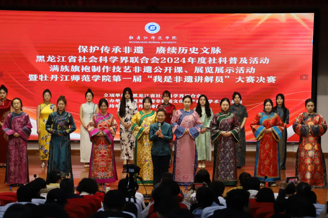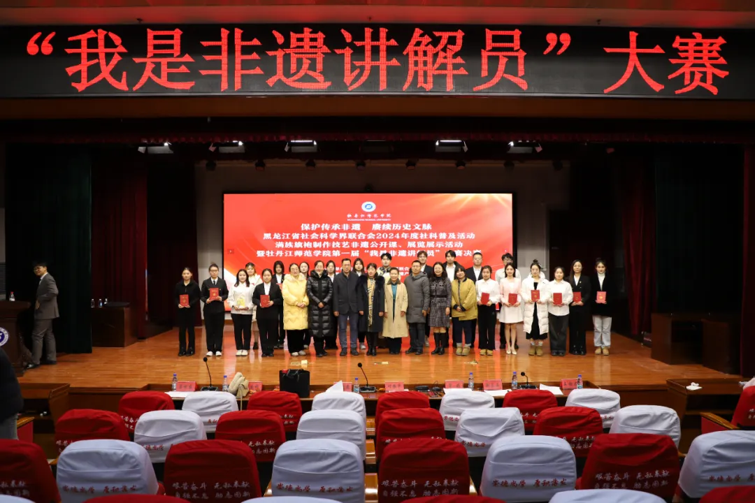 为贯彻落实党的二十届三中全会和黑龙江省哲学社会科学工作推进会精神,加强高校社科普及能力建设,增强大学生社科普及的责任意识与非遗保护传承能力,12月10日,黑龙江省社科科学界联合会立项支持的2024年度社科普及活动——“保护传承非遗,赓续历史文脉”:非遗公开课、非遗展览展示活动暨牡丹江师范学院第一届“我是非遗讲解员”大赛决赛在我校春秋讲坛举办,该活动由我校科研处、文学院支持,黑龙江省非物质文化遗产研究学术交流基地主办,文学院党委书记刘晓霞出席本次大赛。省非物质文化遗产研究学术交流基地主任宋娟教授、文学院副院长施新佳、文学院副院长付振华、历史与文化学院教师尹立娜、美术与设计学院教师赵立石担任本次决赛的评审工作。