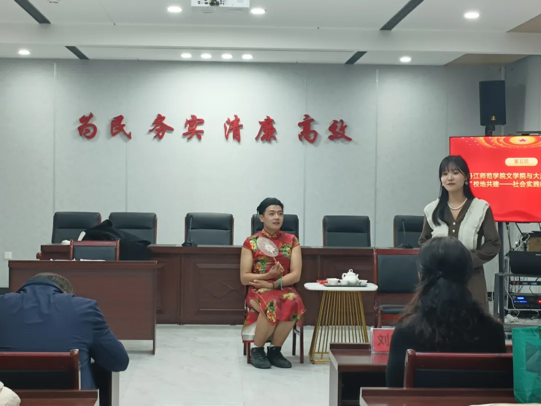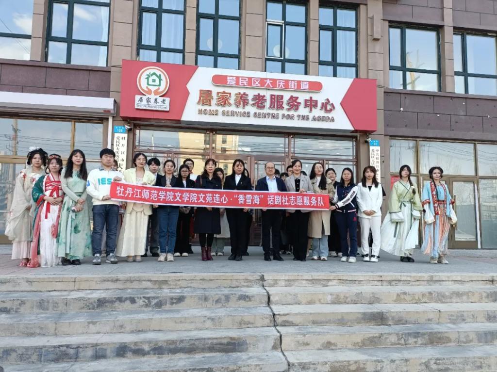 文学院党委书记刘晓霞、院长綦中明、副院长施新佳、爱民区团委副书记陈秋颖、大庆街道办事处主任李红娟、庆旺社区党委书记于洁、文学院团总支负责人纪伟,文学院文苑连心·香雪海话剧社志愿服务队学生代表参加此次仪式。
