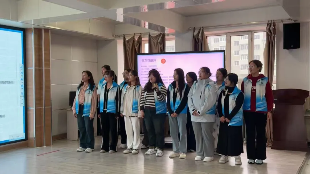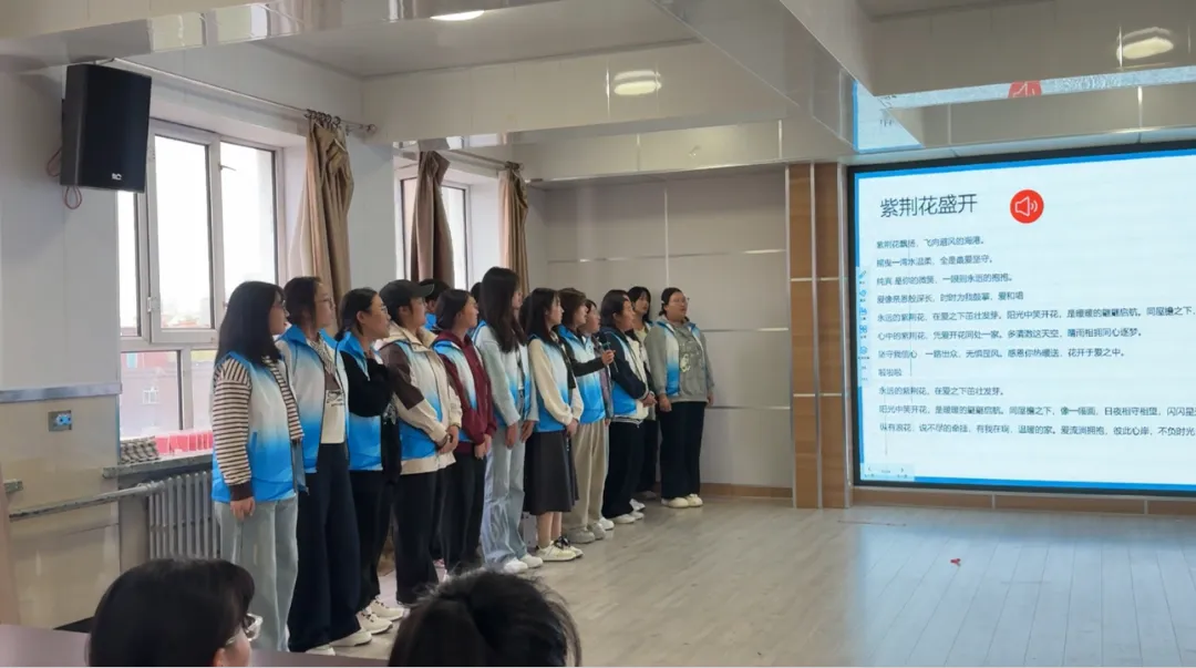 由牡丹江师范学院国家通用语言文字推广普及志愿服务队全体成员和新华小学六年级的同学们共同带来的大合唱 ——《紫荆花盛开》,大家以悠扬的歌声、准确的发音、别样的方式对普通话进行了宣传。当成员们的声音渐落,稚嫩的童声渐入。正如民族复兴的接力棒正在交接,普通话传播的意义恰也在此。